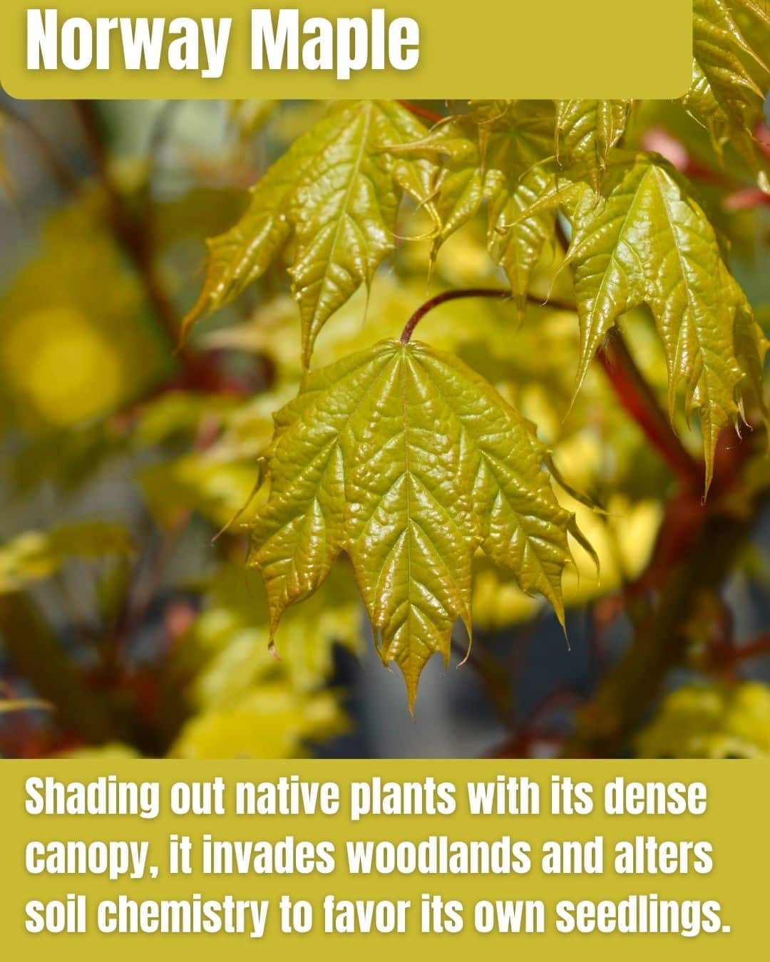 Norway Maple, imported from Europe in the 1700s as a street tree, now invades New Jersey forests and suburbs, outcompeting natives with allelopathic chemicals and heavy shade.