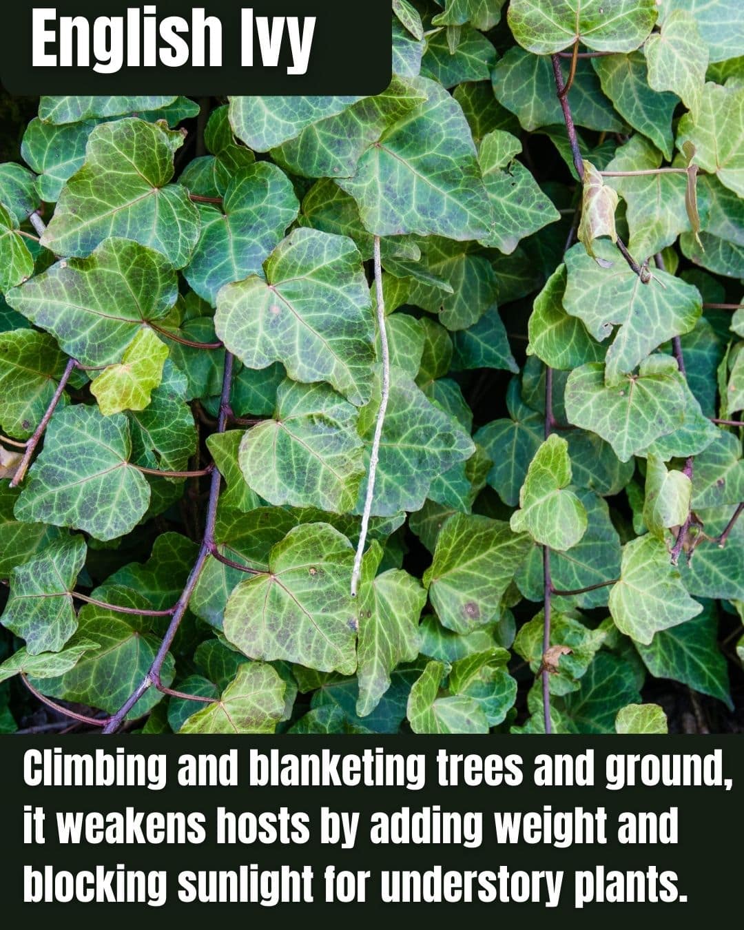 English Ivy, a European vine introduced by colonists, overruns New Jersey grounds and trees, displacing natives and killing hosts in forests and yards.