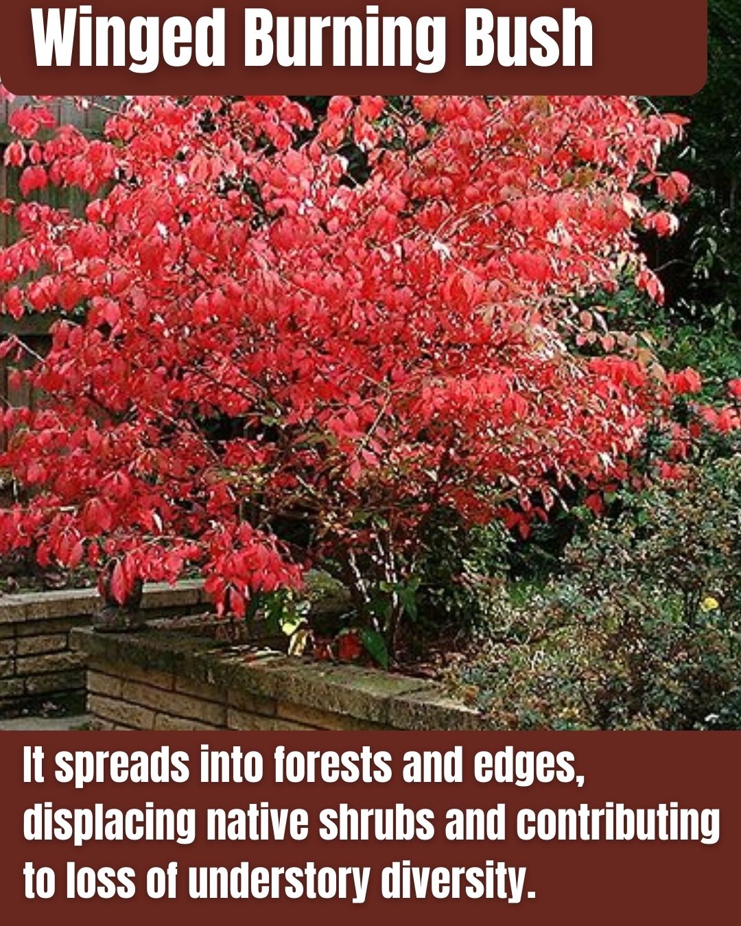 Winged Burning Bush, an Asian shrub introduced in the 1860s for ornamentals, invades New Jersey edges and forests, forming thickets that reduce native shrubs.