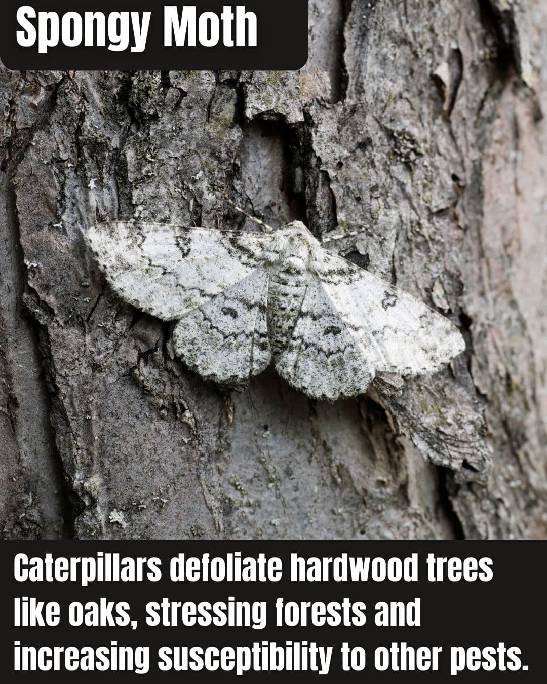 Caterpillars hatch in spring, adults flightless females lay masses of eggs. It’s destructive statewide, decimating Hopewell oaks.