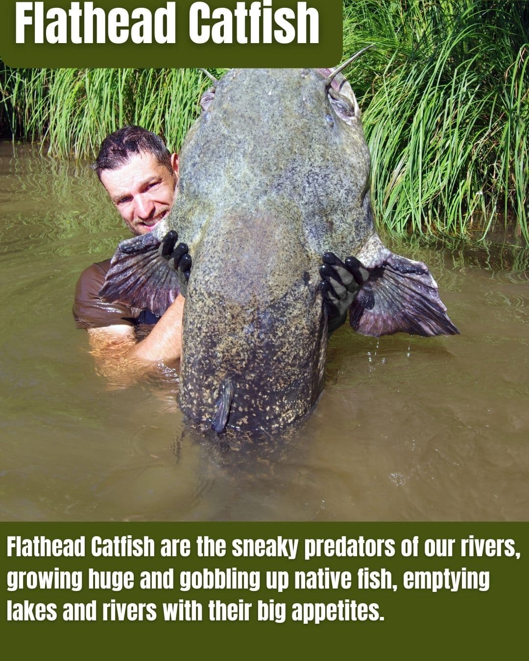 Flathead Catfish, native to the Midwest but invasive in NJ, alters ecosystems by preying on natives in rivers.