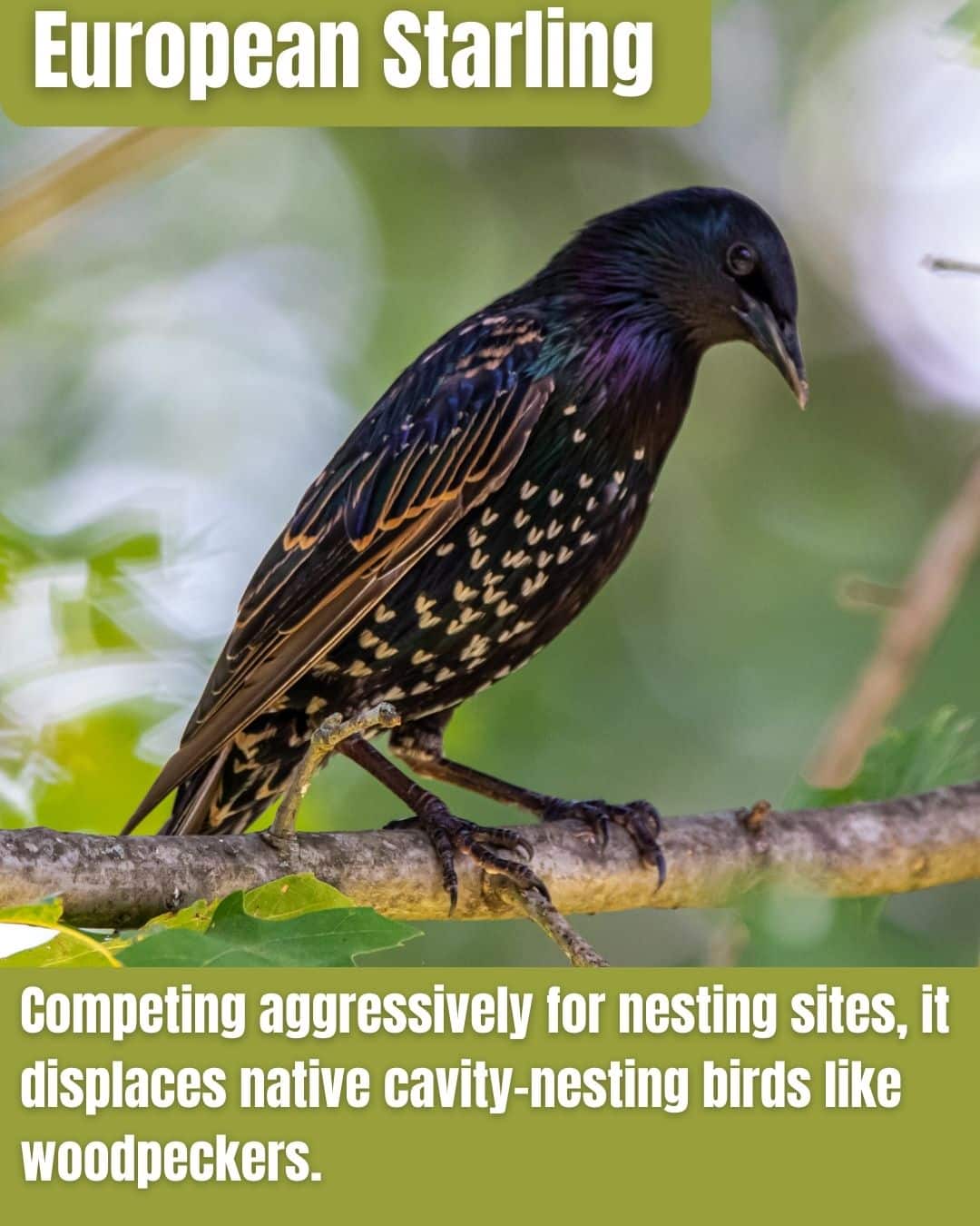 - Murmurations foul areas; displaces woodpeckers statewide.