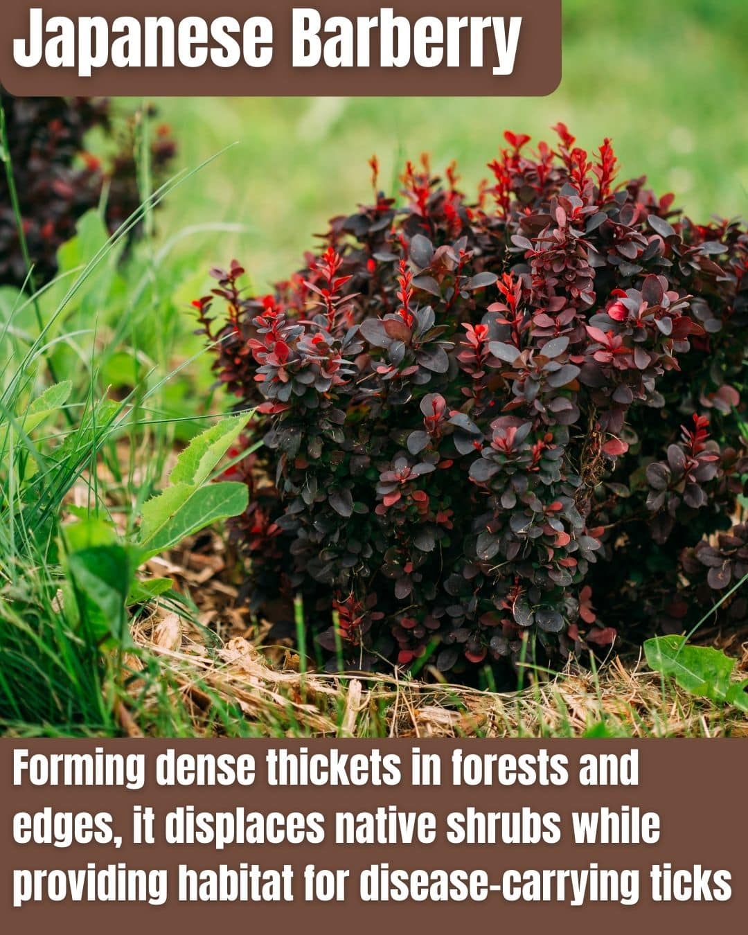 Japanese Barberry, introduced from Asia in 1875 for hedges, has overrun New Jersey forests, forming spiny thickets that exclude native shrubs like blueberry.