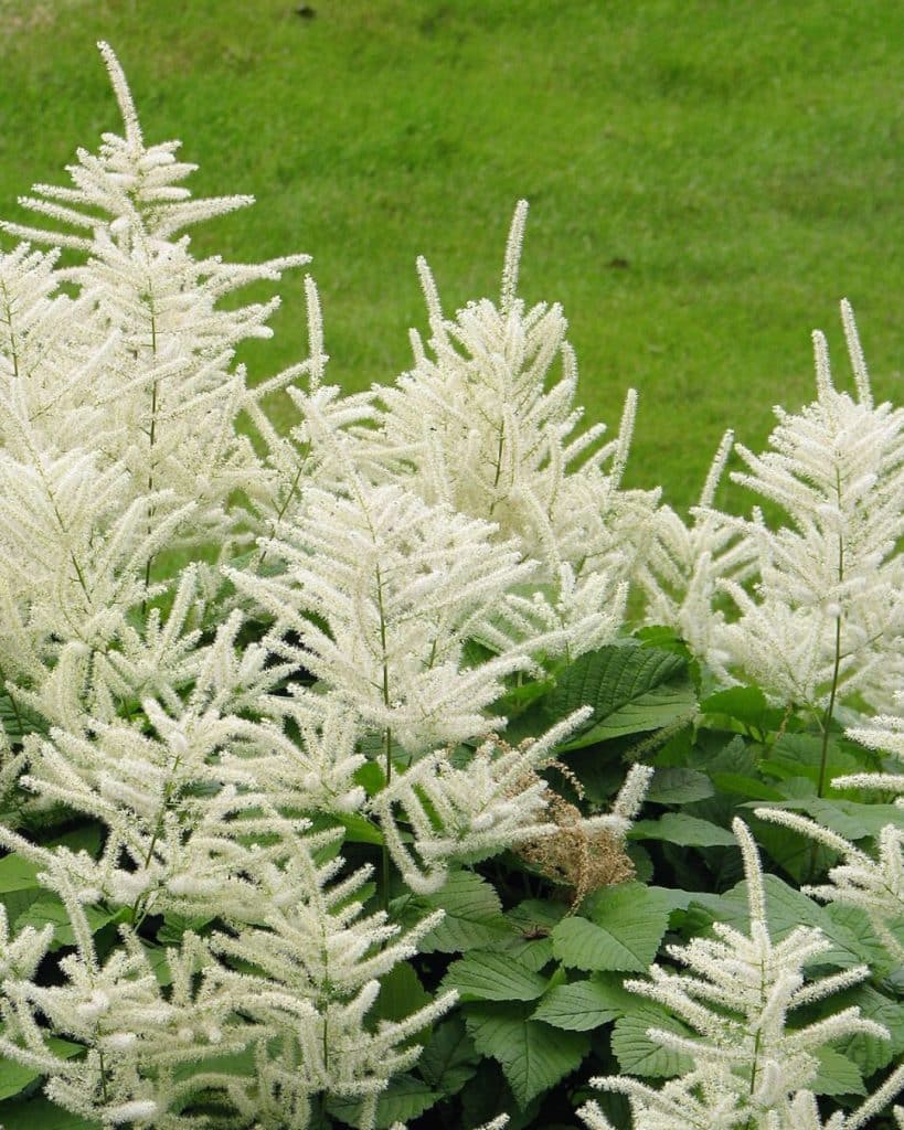 - Large creamy plumes for part shade and moist soil.